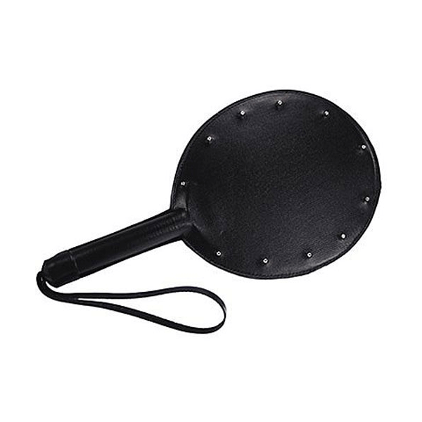 Um tapinha com esta chibata palmatória em courvin com rebites de metal e seu amor vai saber quem está no comando.